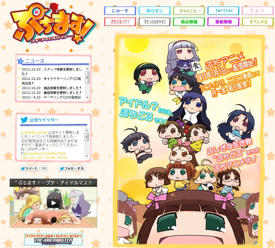 描寫 765 經紀公司的少女偶像們,和不可思議的可愛生物「迷你偶像(ぷちどる)」們相處的點點滴滴。